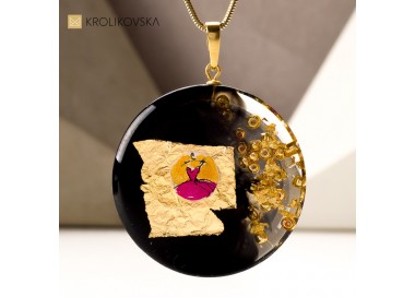 Namalowaną grafikę zatopiłam w idealnie przezroczystej i krystalicznej żywicy jubilerskiej.