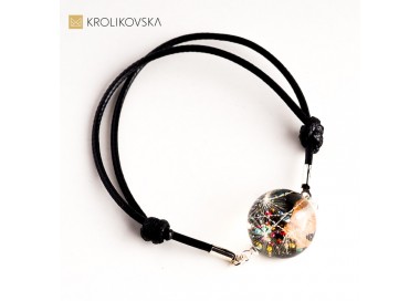 Bransoletka artystyczna na czerwonym sznurku z czarną zawieszką