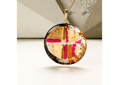 Naszyjnik z grafiką w żywicy, podaruj dzieło sztuki.