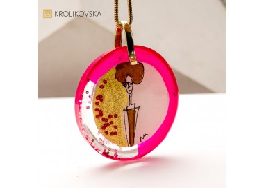 Prezent sztuka w naszyjniku. Malowana kobieta w sukni z tiulu – naszyjnik jak sen Naszyjnik, który przypomina bajkowy obraz. Delikatne...