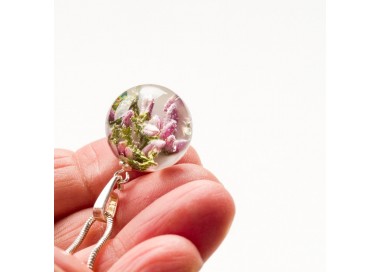 Naszyjnik kula z rośliną w żywicy biżuteria naturalna handmade