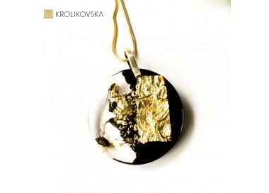 Nowoczesna biżuteria artystyczna. Naszyjnik damski w prezencie to bardzo klasyczny pomysł. Ręcznie Robiona Biżuteria z Płatkami Złota w Żywicy -...