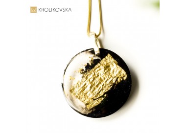Naszyjnik z graficznym motywem w czerni, złote akcenty, autorskie...