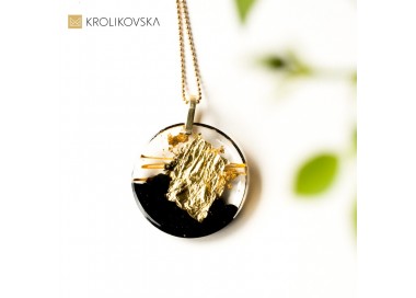 Wisiorek z Płatkami Złota w Żywicy - Elegancka Biżuteria w Czerni i Złocie.