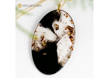 Naszyjnik z formą magii w czarnej żywicy z płatkami złota.
